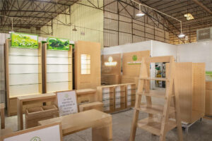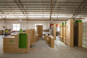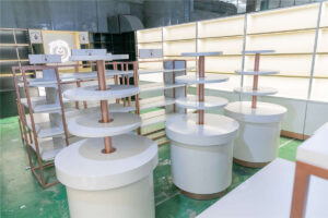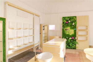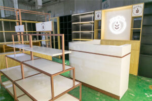 Common materials used in cosmetics shop fittings include wood, metal, glass, and acrylic. Each material offers unique benefits such as aesthetic appeal, durability, and ease of maintenance. The choice of materials often reflects the brand’s identity and the overall design concept of the retail space.