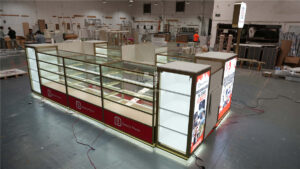 Discover our expert custom mall kiosk manufacturing services, designed to create unique and eye-catching retail solutions tailored to your brand. We specialize in high-quality materials and innovative designs to enhance your mall presence. Whether you’re looking for a portable kiosk or a permanent installation, our team will guide you through the process from concept to completion. Boost your business visibility and customer engagement with our bespoke kiosks.